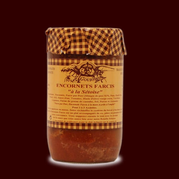 ENCORNET stuffed 60% (Pure pork stuffing: Pork meat (France*), EGG, Rice, BREAD, Garlic, Parsley, Pepper, Salt), Sauce (Tomato, Water, Onion, Carrot, White Wine, Tomato concentrate, Salt, Leek, Extra virgin olive oil and Herbs).